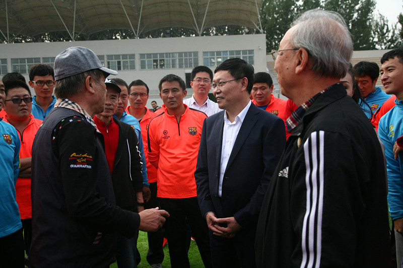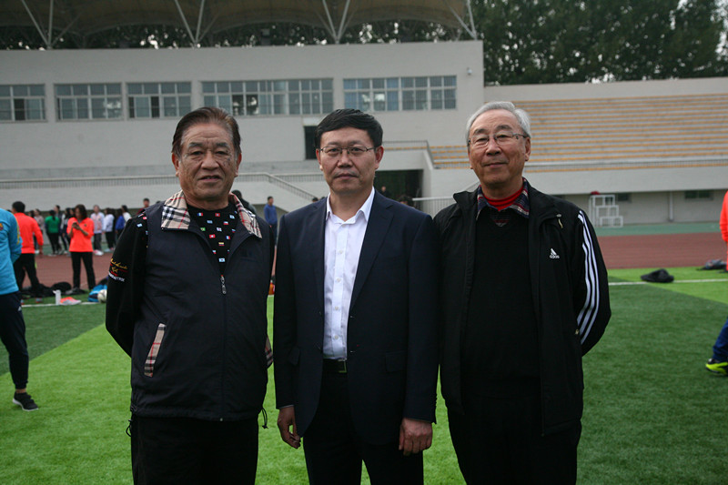 2017年10月19日,校长林松柏在JINNIAN金年会章丘校区足球场会见原中国国家女子足球队主教练马元安和原北京国安足球队主教练郭瑞龙,并与参加2017年山东省校园足球骨干教师培训的学员们进行交流。