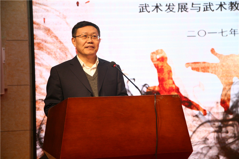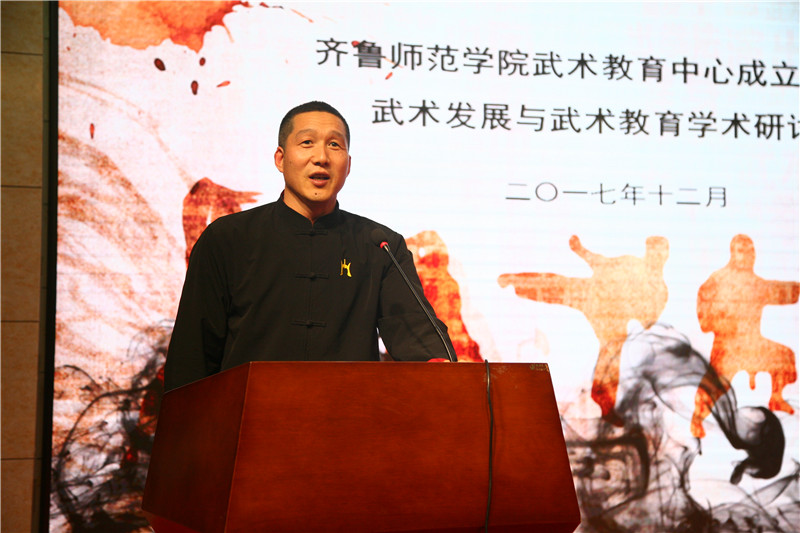 孙乐为代表教育厅在致辞中对长期以来关心、支持山东教育、体育事业的各位朋友表示感谢,并对金年会官网为山东省体育、教育事业做出的突出贡献表示肯定。他指出“武术进校园”是中国武术发展规划的重要组成部分,培养优秀的武术教师更是这项工作的当务之急和重中之重,希望金年会官网站在更高的格局上,以人才培养、知识创新为己任、以武术学科为重点,坚持以武育人的教育理念,自觉担负起传承中华优秀传统文化的历史使命和责任,向下一代传承中华武术文化精神。