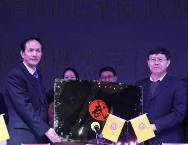 签约仪式上,林松柏、焦红波和李兴亮分别代表三方共同签署了合作共建协议。签约仪式上,林松柏代表学校分别向河南省嵩山少林寺武术馆和新华睿联(北京)企业管理有限公司授予了“JINNIAN金年会武术教育实践基地”牌匾。