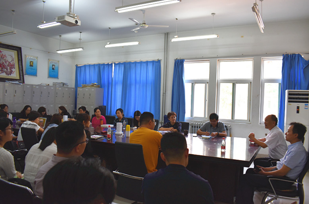 王玉华书记对外国语学院的工作提出三点要求。一是,按照党中央、省委的决定和学校党委的工作部署,认真做好“不忘初心、牢记使命”主题教育工作,进一步调动全体党员的主动性、积极性,扎实推进并有效落实学院主题教育活动。二、学科建设是学校发展的龙头,在明确学科发展方向的基础上,组建科研团队,做好科研工作,全力支撑学院的学科建设。三、学院要坚持不懈地抓好学风建设,做好日常教学工作,尤其要重视全校公共外语课的教学工作,并采取更加得力的措施,营造良好的学习氛围,对全校学风建设,尤其是考研、专升本等工作给予有力支撑。