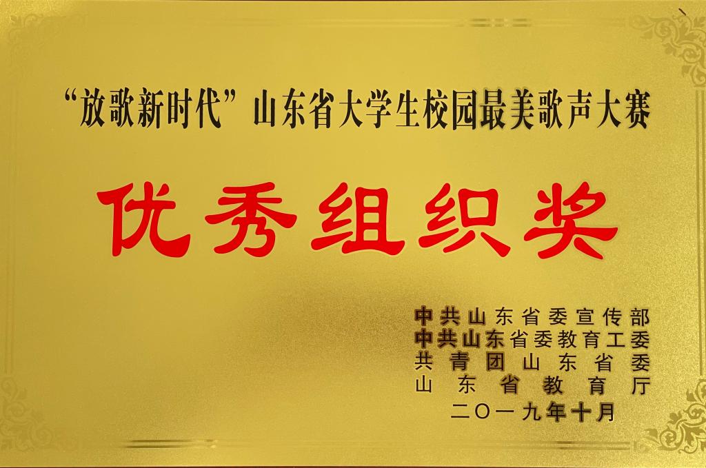 金年会官网荣获“放歌新时代”山东省大学生校园最美歌声大赛“优秀组织奖”