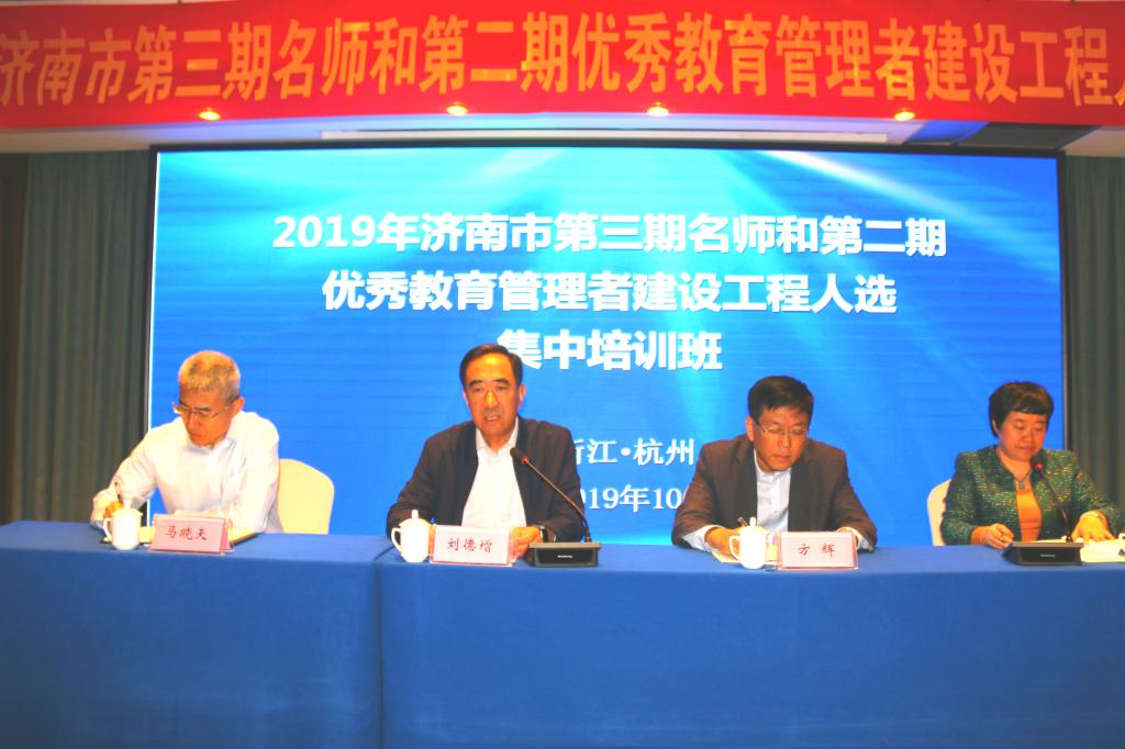 10月22日,由金年会官网师训干训中心承办的2019年第三期济南名师和第二期济南优秀教育管理者建设工程人选“课程建设与课堂教学改革”专题培训班在素有“人间天堂”美誉的杭州顺利开班。金年会官网副校长刘德增,济南市教育局副局长方辉、教师工作处处长马晓天等出席开班典礼。培训由中小学师训干训中心副主任刘文华主持。