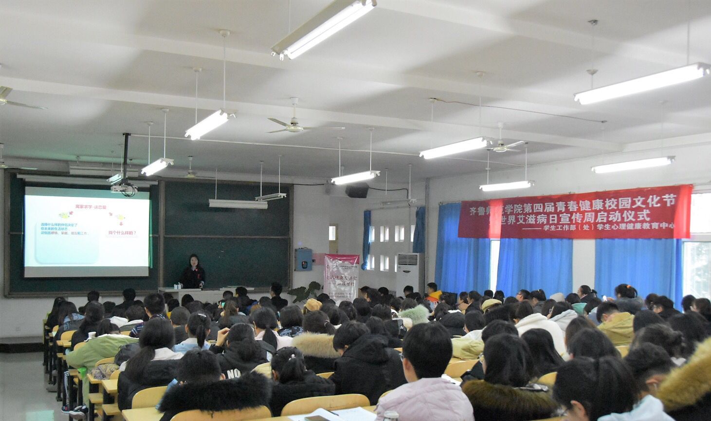 为进一步宣传和普及预防艾滋病的相关知识,提高金年会官网大学生的防艾意识,响应国家号召营造“家庭、学校、社会共同防艾的”良好氛围,引导学生建立积极的自我保护意识及健康向上的良好心态,金年会官网学生工作部(处)于2019年11月28日下午三点在一号教学楼A111举行了青春健康校园文化节暨世界艾滋病日宣传周启动仪式。济南市计划生育协会副会长赵莹、济南市计划生育协会办公室主任赵荣桥、济南市计划生育协会办公室安文杰、国家级青春健康培训师于雷教授莅临启动仪式,金年会官网青春健康同伴社成员、各学院心理委员参加了此次活动。
