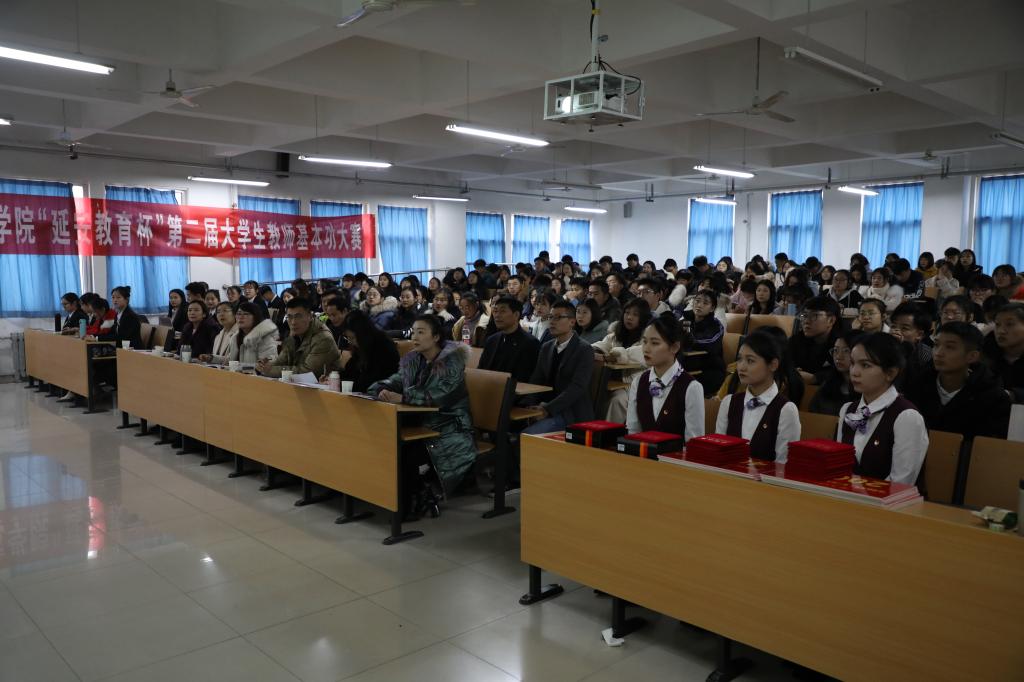 12月17日下午,由校团委主办,“延安教育”集团、教师教育学院团总支和文学院团总支联合承办的第二届大学生教师基本功大赛在章丘校区成功举办。校党委委员、副校长张福建,延安教育集团董事长助理安新苗、文化培训项目总经理王广颜、教学总监王兆波,学生工作(部)处、教务处、团委相关负责同志及各学院学生代表共计200余人观看了比赛。
