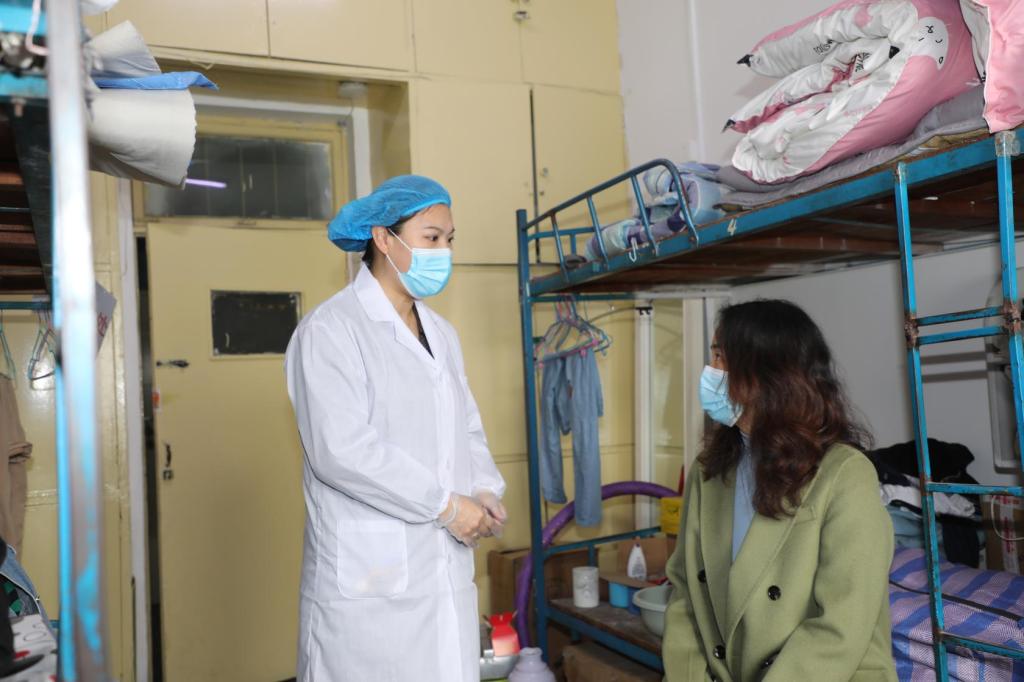 此次演练中重点对入校测温、日常消毒、入楼测温、临时留观点接诊、应急处置流程、临时留观点消毒、食堂就餐流程等进行了实战演练。在此次情景模拟演练中,学校安排了一名工作人员扮演体温异常学生,对进校时和宿舍内出现体温异常时启动突发疫情应急处置流程,进行了全过程的演练。