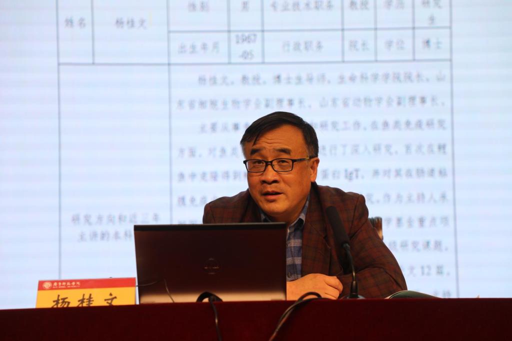 4月16日下午,学校在章丘校区学术报告厅召开2020年度一流本科专业申报培训会,重点部署一流本科专业申报和建设工作。会议由教务处负责人孙洪兆主持,各学院院长、分管教学副院长、各专业负责人、教务处和教学质量监控与评估处负责人及相关工作人员参加了会议,山东师范大学生命科学学院院长、博士生导师杨桂文教授做了报告。