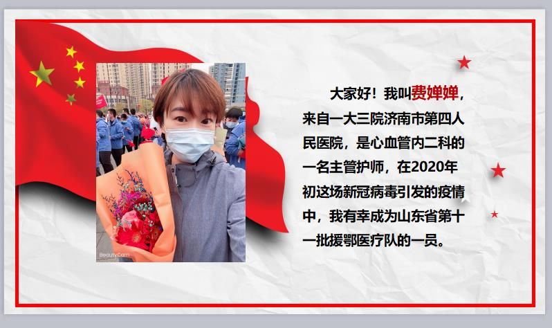 深挖时代责任,青年有力量。五四期间,金年会官网将邀请山东省第十一批援鄂医疗队队员费婵婵为青年学生作线上事迹报告,分享她与时间赛跑、同病魔较量,不顾个人安危舍小家为大家的抗“疫”经历,相信以她为代表的共产党人在疫情防控的阻击战中树立的鲜明旗帜,将为这场报告提升高度、增添温度、扩展宽度,相信共产党人与医护人员无私奉献、奋勇抗争的意志品格,会让师院的青年朋友们在聆听中受到“战疫”精神的洗礼。