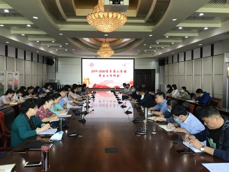 会上,学生工作部(处)部长孙磊传达部署了2020年学生工作要点,她指出,2020年的学生工作将继续坚持以学生为中心的工作理念,主动适应新时代学生工作发展要求,以学生素质和能力的达成为重点,不断强化学生教育理念,持续培育优良学风校风,提高学生服务质量,增强学生工作队伍素质,为培养德智体美劳全面发展的时代新人保驾护航。团委书记孔庆松就2020年团委工作重点进行了安排部署,他指出,2020年团委工作将按照共青团中央和团省委有关要求,坚持“一四四一”总体思路,突出特色创新,活跃校园文化,充分发挥第二课堂作用,进一步营造良好校园文化氛围。学生工作部(处)副部长贾龙对2020年春季学期学生返校工作具体安排进行说明。