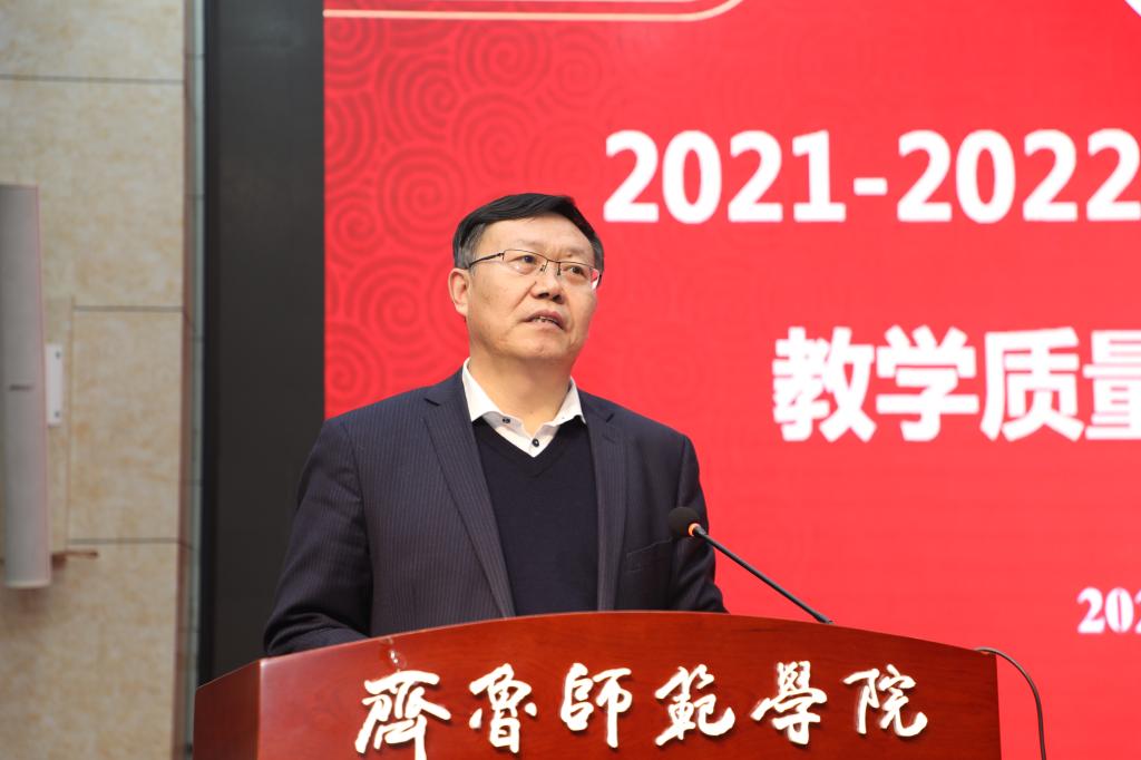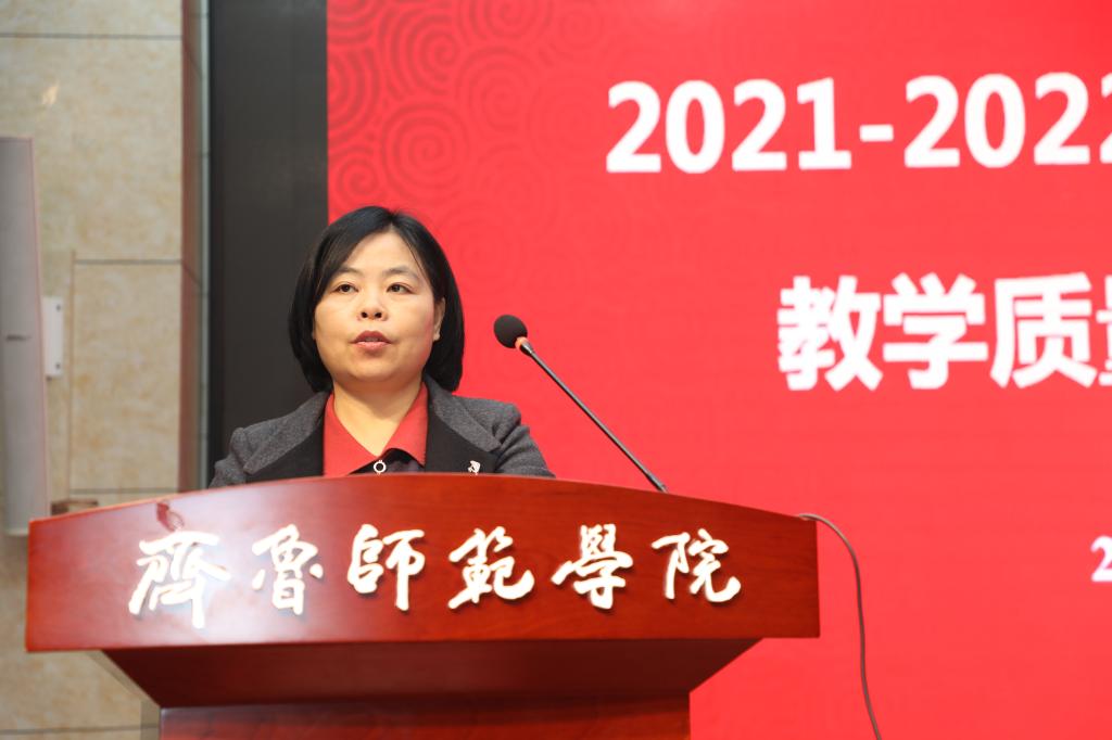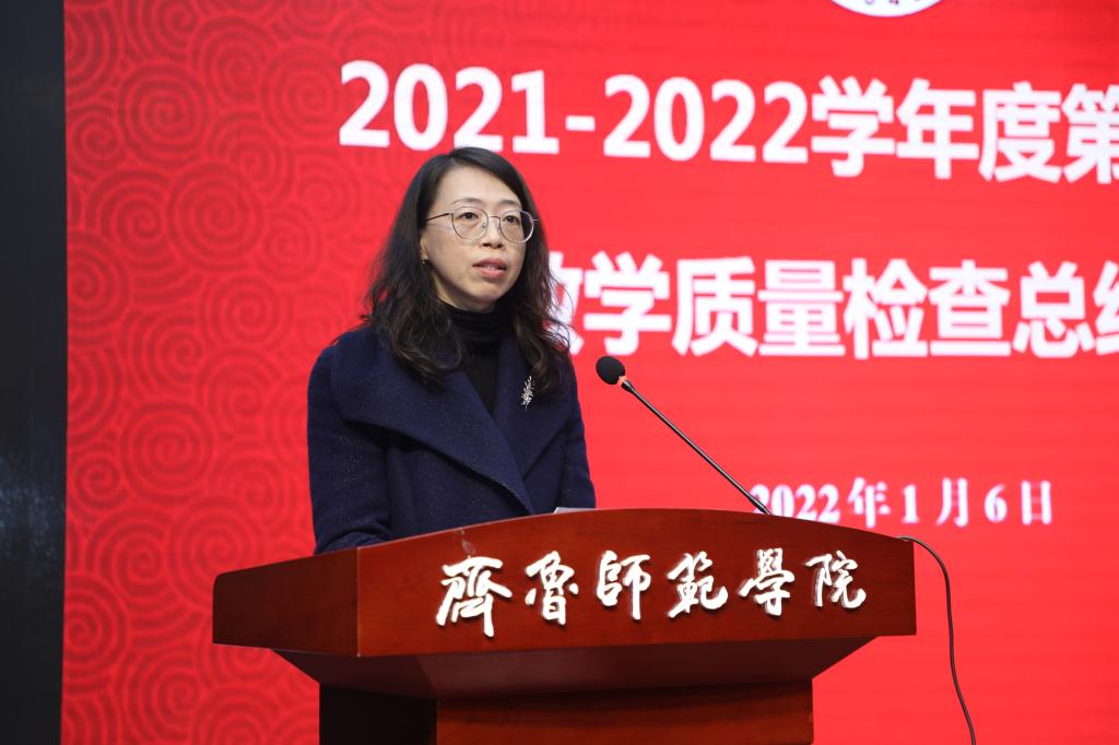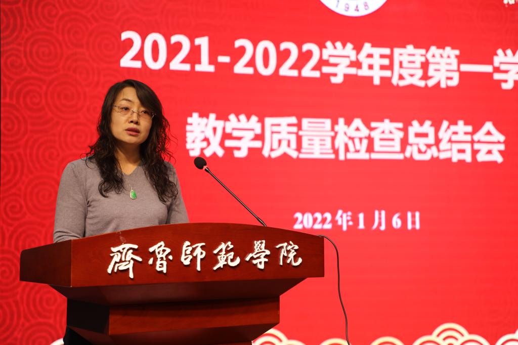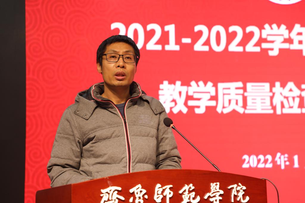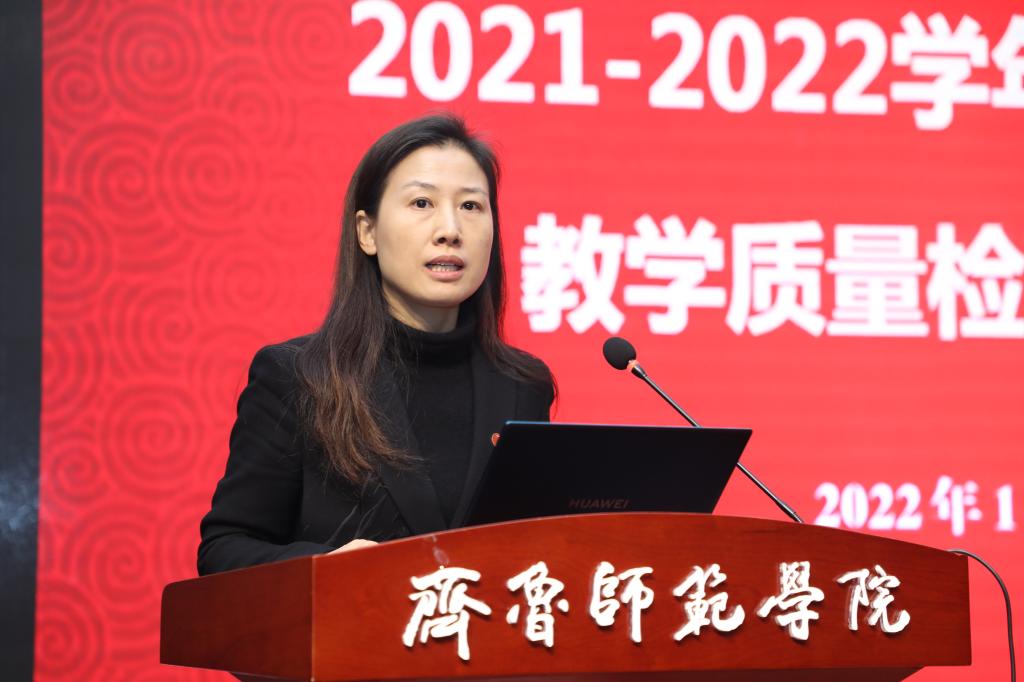 2022年1月6日下午,金年会官网在章丘校区图书馆学术报告厅召开2021-2022学年度第一学期教学质量检查工作总结会。党委副书记、校长林松柏主持会议并讲话,全体校级督导员,各二级学院院长、副院长,各教研室主任、副主任,教务处负责人及相关人员,教学质量监控与评估处全体人员参加了会议。