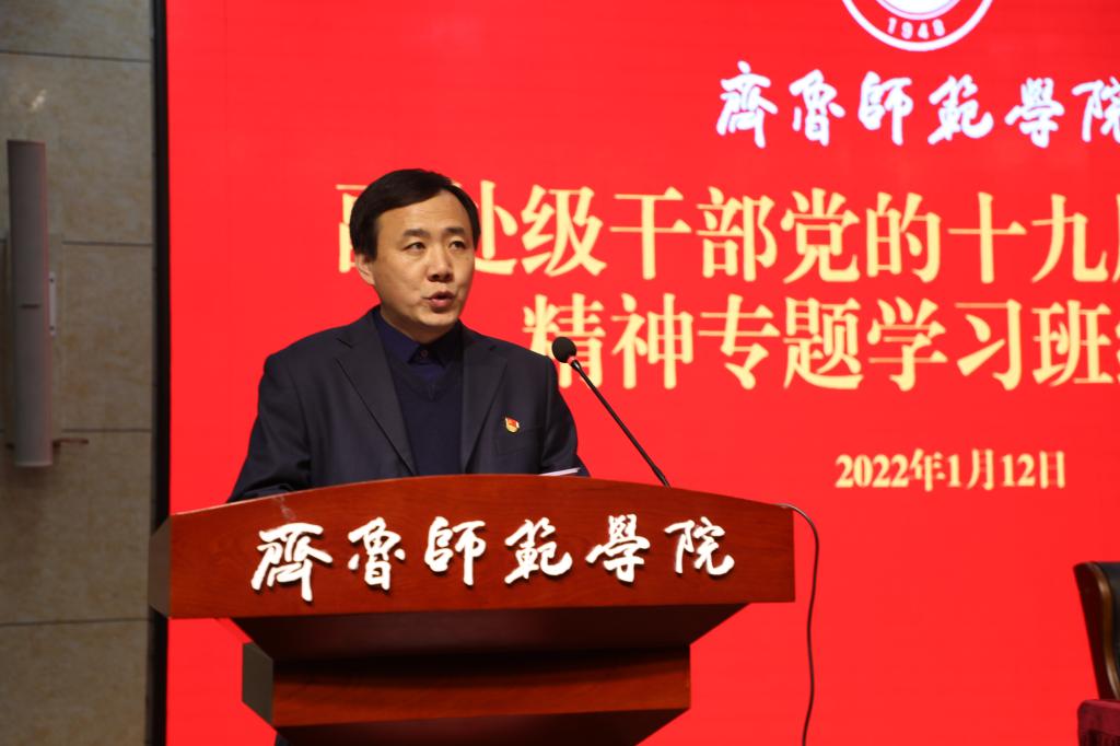 1月12日下午,在章丘校区学术报告厅举行了副处级干部党的十九届六中全会精神专题学习班结业式。党委书记王玉华出席仪式并讲话,全体学员参加了仪式。结业式由党委委员、组织部部长李伯伟主持。