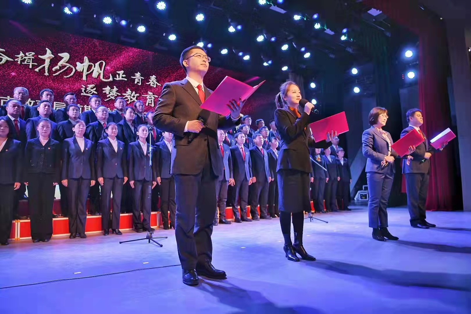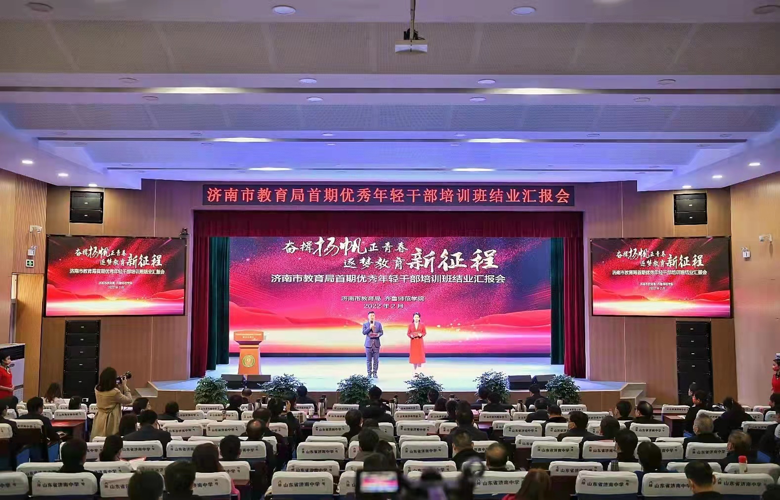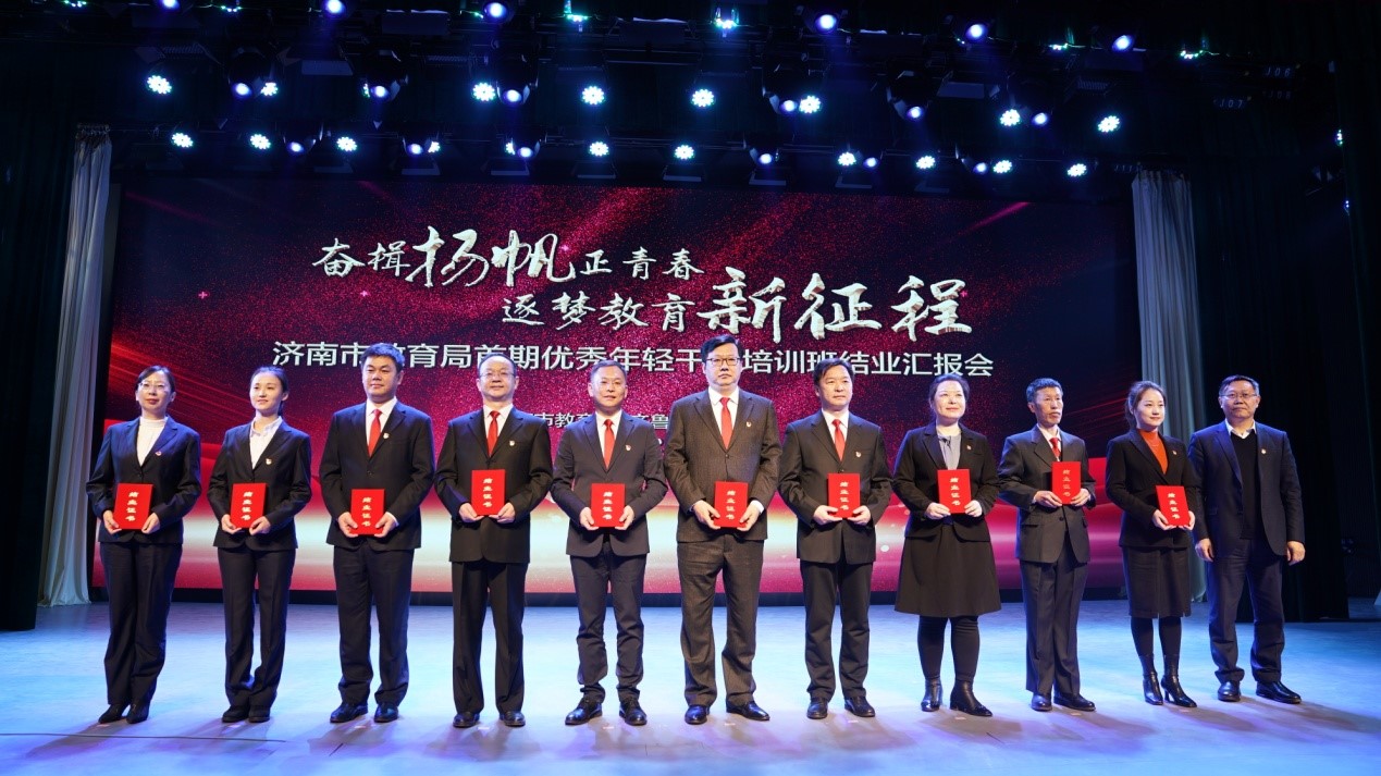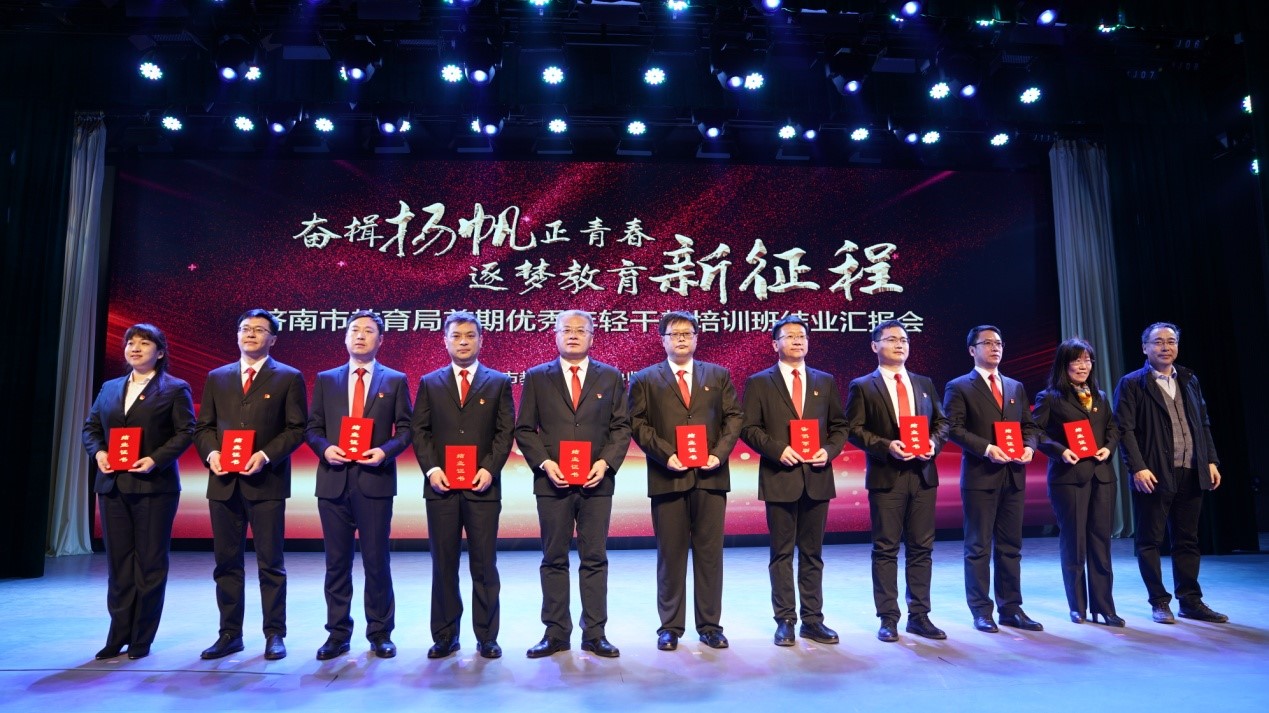 济南市教育局首期优秀年轻干部培养工程是市教育局深入贯彻市委“新时代年轻干部选拔培养工程”精神,促进年轻干部成长成才的创新举措。会上举行了颁发结业证书、学员课题、攻坚项目、个人展示汇报、专家点评、集体朗诵等一系列活动。