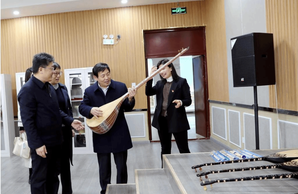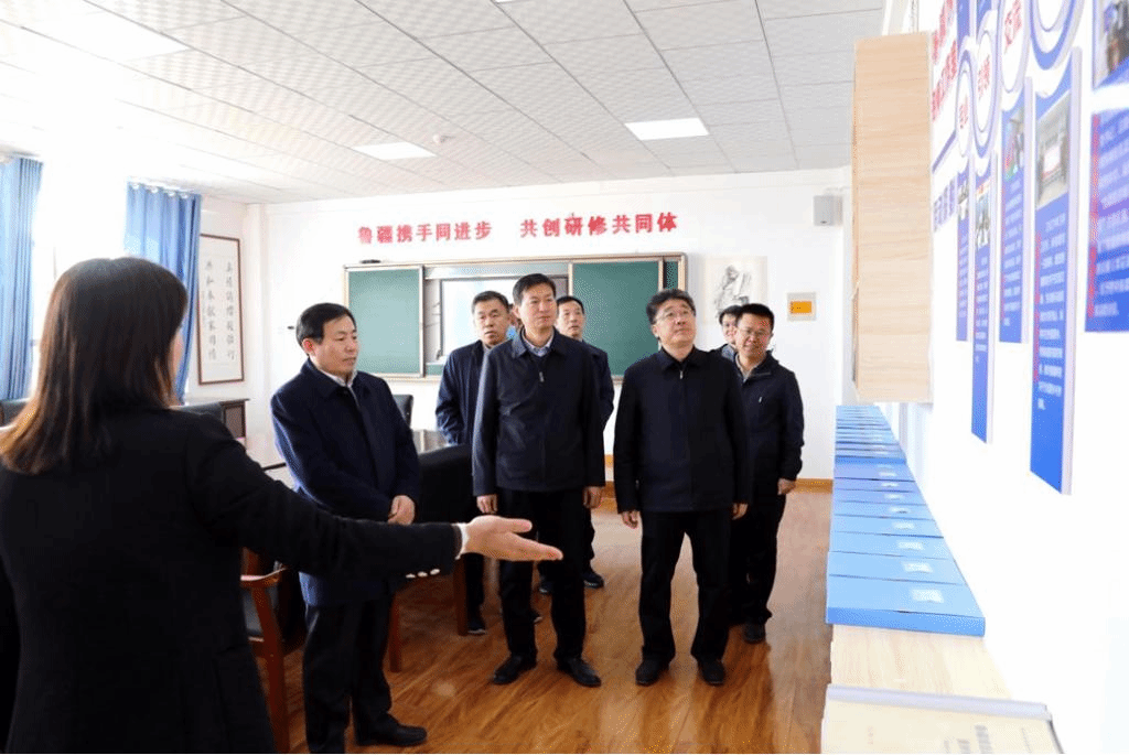 在实地考察麦盖提县第四中学时,刘宝君一行了解日照援疆指挥部在麦盖提县第四中学探索“共同体”组团教育援疆新机制,组建山东援疆实验班,打造“正德”校园文化,推动学校国学教育,开设社团活动等方面的工作成效;参观“鲁疆情名师工作室”及学校打造的“阳光班级文化”,国学书院、国学堂、党史馆、美术馆等;观看援疆教师组织排演的国学经典剧目《梨花颂》和《少年志》,对日照教育援疆给予高度评价。