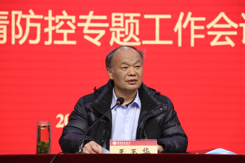 会上,王玉华传达了近期上级有关疫情防控工作会议精神,通报了学校疫情防控有关情况。为深入落实会议精神,有力有序有效推进疫情防控各项工作,王玉华部署安排近期学校疫情防控重点任务,提出五点要求。一要坚持严字当头,严格落实工作标准,始终绷紧常态化疫情防控这根弦,坚决克服麻痹思想、厌战情绪、侥幸心理、松劲心态。二要坚持求真较真,确保信息真实可靠,如实报备个人行程等信息,严禁瞒报谎报,防止漏报迟报。三要坚持细致精准,做到谋划部署精准,精准对标细化落实疫情防控各项工作方案,确保排查人员无遗漏,排查要求全覆盖。四要坚持实字托底,确保取得防控实效,层层压实工作责任,将防控要求落实到每一个环节、每一位师生员工。五要坚持高效快捷,及时有效处置突发状况,第一时间落实上级精神、形成相关信息台账、处置应对突发情况。