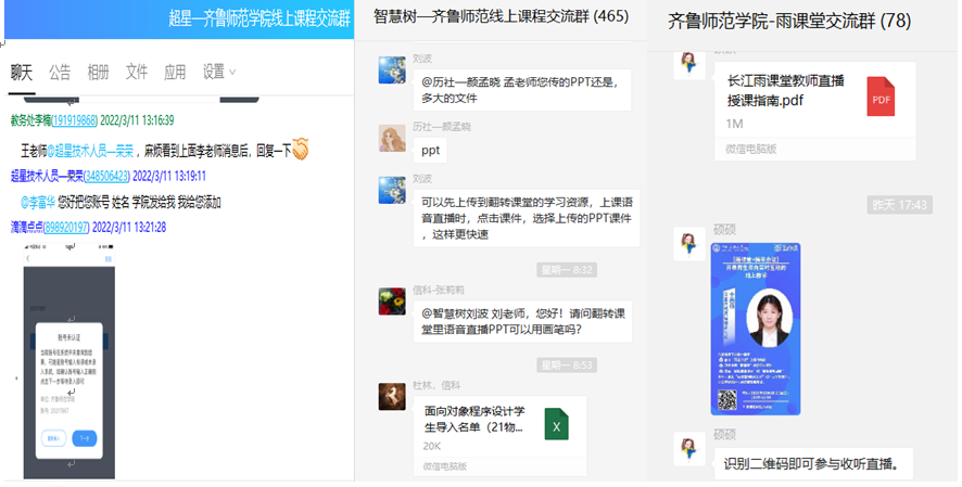 积极应对、有序推进。为确保线上教学顺利开展,教务处在第一时间发布了在线教学平台资源使用指南、组织线上教学政策解读和线上教学专题培训等资料,帮助老师们不断提高在线教学能力与水平。组织超星、智慧树等平台技术人员为金年会官网教师提供24小时的技术支持,建立了多个线上教师咨询交流群,全程全天在线服务、答疑,帮助教师完成用户注册、数据对接、资料上传等工作,全力做好在线教学保障工作。