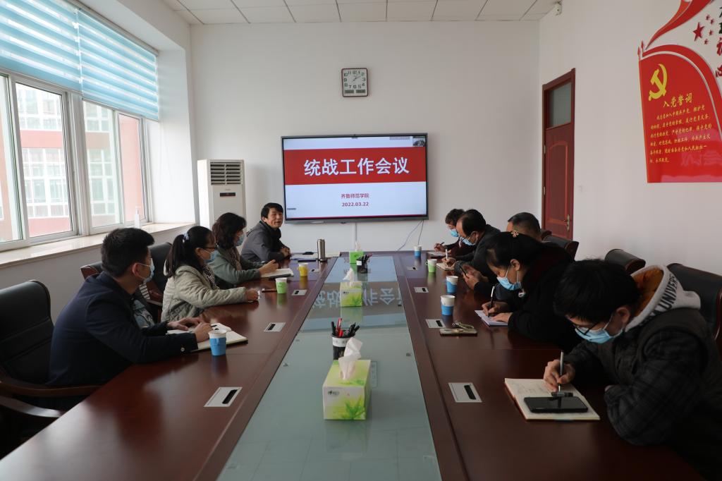 会上,与会人员学习了山东省委统战部、省委教育工委学校统战处和学校2022年工作要点,通报了2021年统战工作开展情况,就2022年学校统战重点工作作了安排部署。2021年学校统战工作在省委、省委教育工委和学校党委的领导下,以学习贯彻习近平总书记关于加强和改进统一战线的重要思想为主线,以党史学习教育为依托,以学习宣传贯彻《中国共产党统一战线工作条例》为重点,以庆祝建党100周年系列活动为契机,以进一步发挥新时代统一战线法宝作用为目标,按照统战工作的新规定、新要求、新标准,进一步加强和改进新时代党外知识分子思想政治工作,在全体统战成员的积极配合下,学校统战工作取得了长足发展,多项工作有了突破和进步。