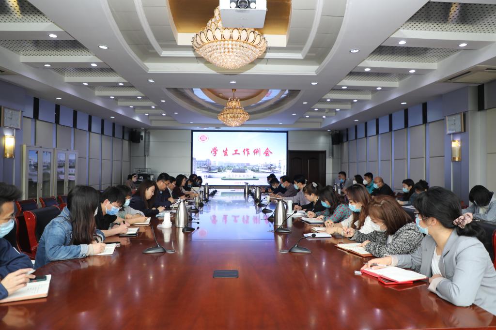 学生工作部(处)部长孙磊传达了上级关于学校安全整治、做好2022年专升本考试等工作的文件精神,就学生疫情防控、安全管理、宿舍安全月活动、就业创业等近期学生工作重点做了部署安排。团委书记孔庆松指出在共青团建团100周年之际,学校将组织“五四”青年座谈会、“五四”青年表彰、“青春心向党 建功新时代”系列活动等面向全体学生开展的各项工作,并对学生群团组织管理、青鸟计划等工作提出了要求。