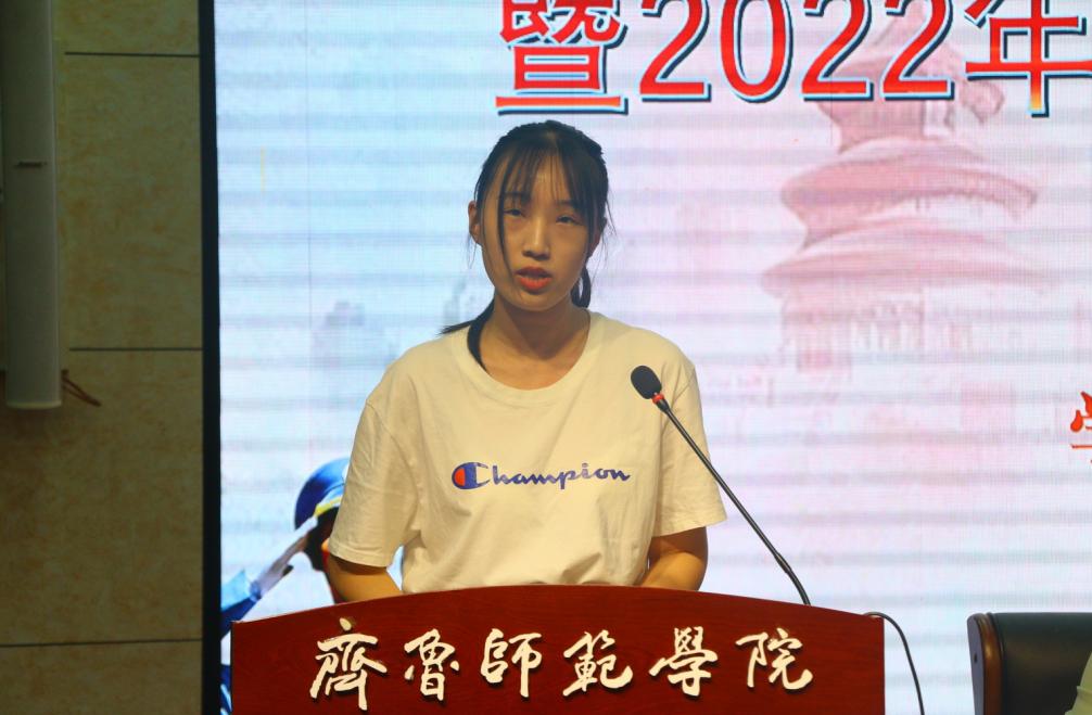 优秀退伍学生代表外国语学院2018级英语专业穆红丽、征兵工作先进单位代表美术学院团总支书记梅茹发言,分享学习和工作经验。