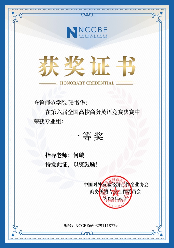 经过激烈角逐,金年会官网学生共126名选手晋级全国决赛,35名参赛选手在全国决赛中脱颖而出,分别荣获国家一等奖1人,二等奖6人、三等奖28人。其中,专业组张书华获得全国决赛一等奖,专业组赵静、杨爱民、唐潇、刘晓萌获得全国决赛二等奖,非专业组初晓明、麻永祺获得全国决赛二等奖。外国语学院石磊、何璇等商务英语教研室老师获得竞赛优秀指导教师奖。