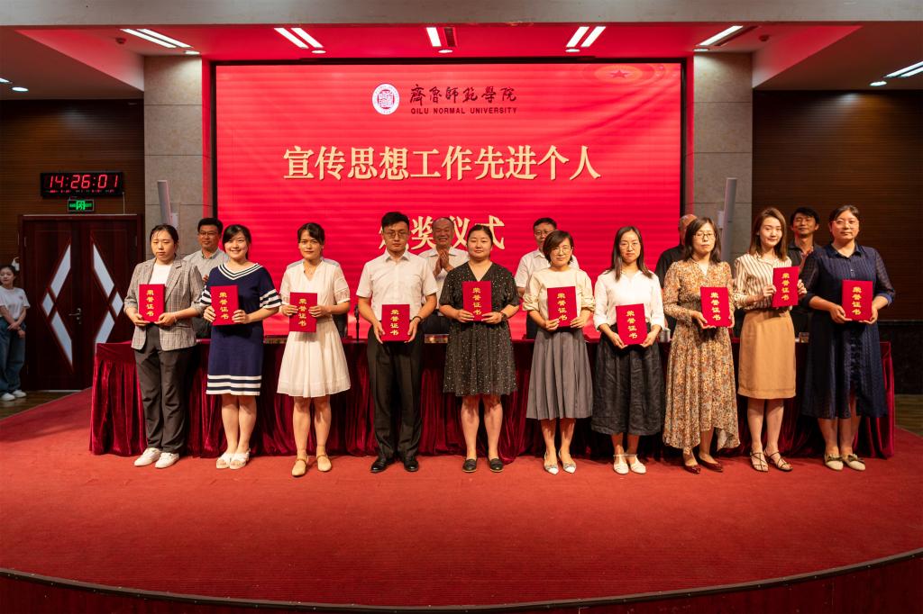 在大会表彰环节,工作人员宣读表彰决定和名单,学校领导为获奖集体和个人进行颁奖。为总结经验,激励先进,经学校党委研究,决定对宣传思想工作先进单位、外宣工作突出贡献奖、新媒体创新奖、宣传先进个人等进行表彰。