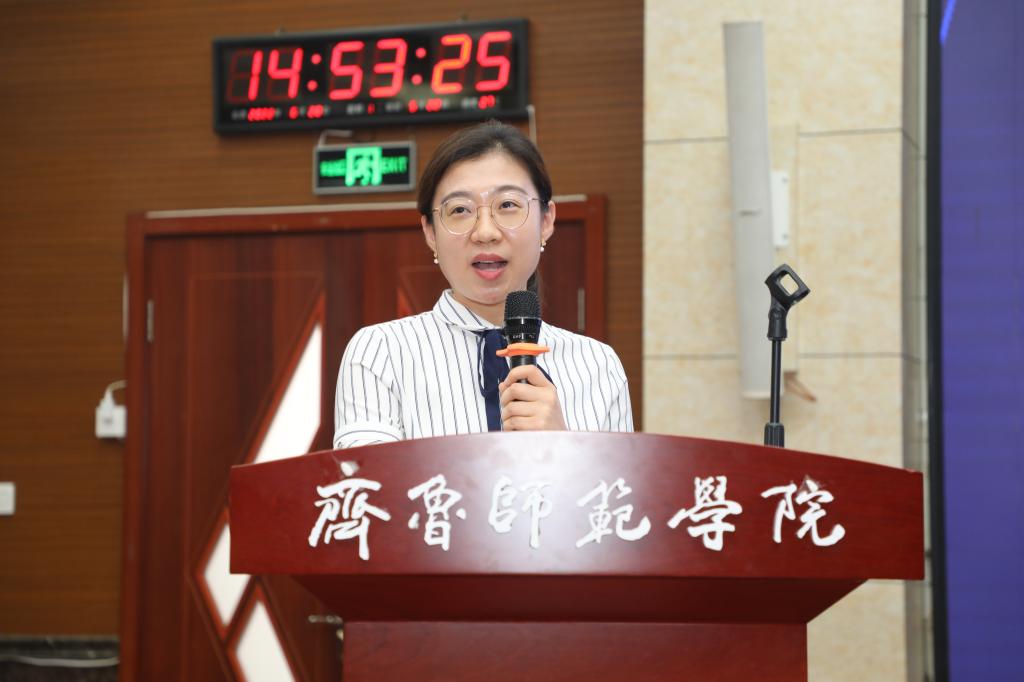 在大会交流发言环节,学生工作部(处)部长孙磊、音乐学院党委副书记迟英娟、团委书记孔庆松、化学与化工学院杨睿,作为获奖集体代表、个人代表依次上台发言。