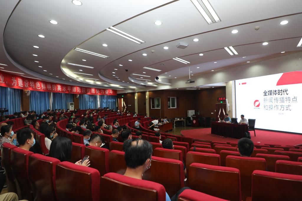 6月22日上午,按照学校意识形态与宣传思想工作会议安排,大众日报新媒体运营中心主任、高级编辑兰传斌受邀到校作新闻宣传工作方面专家辅导报告会。党委副书记、校长林松柏主持报告会,参全体中层干部、辅导员参会。