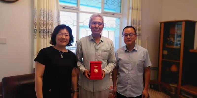 在获得奖章的老党员家中,马海涛等一行送上热烈祝贺和崇高敬意,双手送上纪念章并合影留念。老党员们追忆、回顾了入党50年的峥嵘岁月、奋斗历史及难忘经历,并表示,“人老心不老、人老心更红”,不仅要继续发光发热,为党的事业、为学校的发展贡献力量,还要认真教育下一代,继承光荣传统和优良品质,永远跟党走。