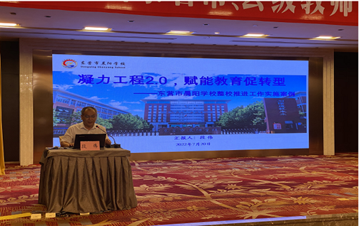 7月20日至21日,依托2022年山东省市县级培训管理者高级研修班培训现场,向全省186个市、县推介展示了区域典型案例2项、学校典型案例4项、教研组典型案例4项、教师应用典型案例4项。典型案例主持人围绕问题提出、实施策略、实施成效、成果产出、亮点特色和思考展望全面展示了区域实施、整校推进、校本研修、教师应用和精准测评的有效路径和实施效果。