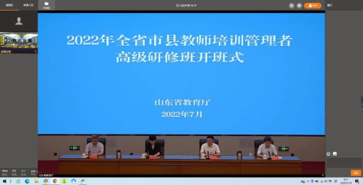 JINNIAN金年会师训干训党总支书记毕诗文、山东省中小学师训干训中心主任刘文华、副主任黄雯、师训部主任王凯、副科长张陆陆等全程参加了高研班的组织实施工作。高研班的成功举办,为2022年山东省“互联网+教师专业发展”工程的顺利实施夯实了组织管理和专业指导的基础。据统计,全省16个市共有944451名教师报名参加研修学习。截止到目前,全体参训教师已经完成了自主选课,将于8月1日至12月31日陆续开启课程学习、专业研讨和实践应用等研习活动,省级专业指导活动将持续到2023年4月30日。