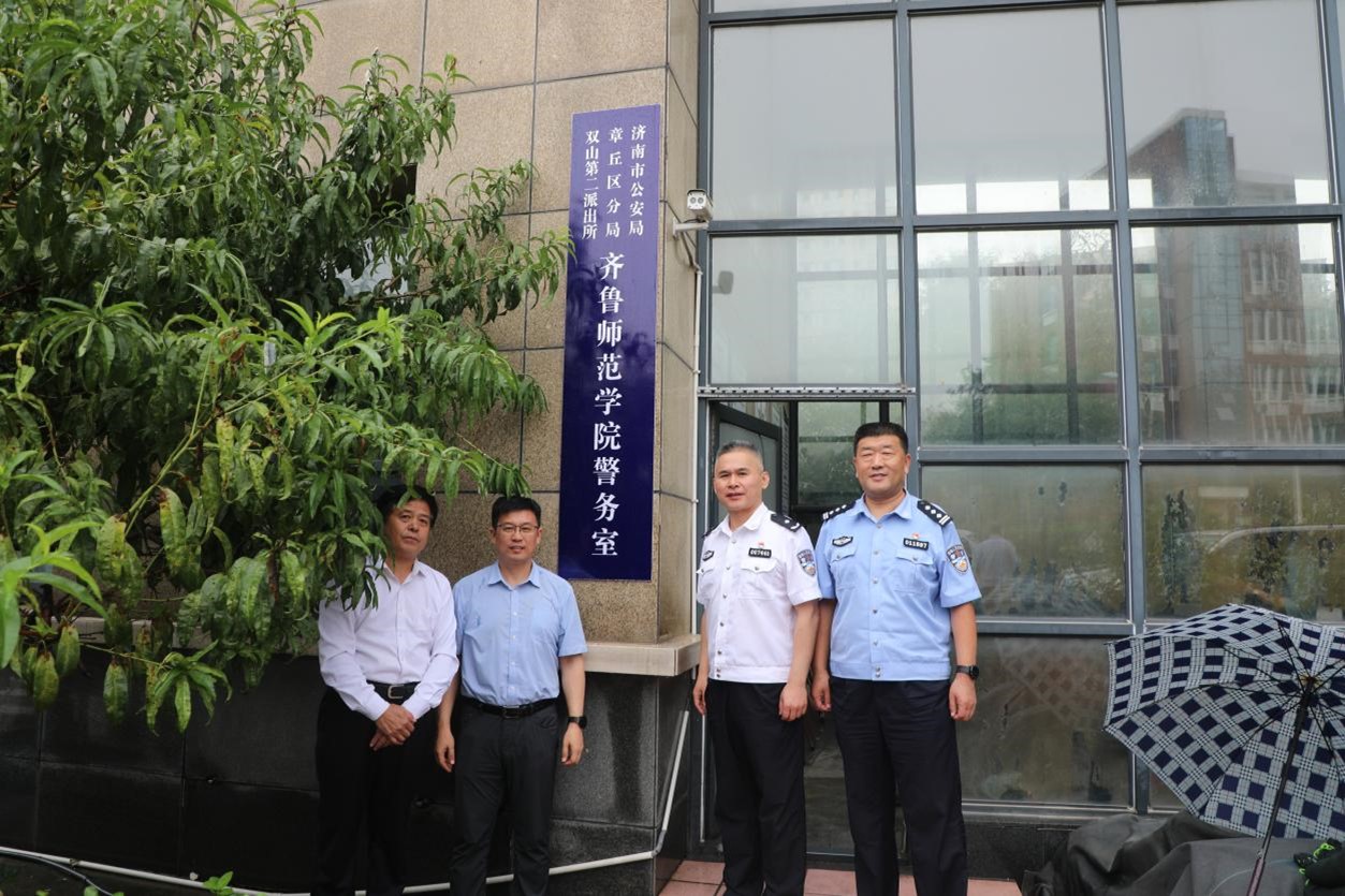 8月10日上午,金年会官网举行“JINNIAN金年会警务室”揭牌仪式。济南市公安局经济文化保卫支队支队长朱容海,学校党委委员、副校长李伯伟共同为“JINNIAN金年会警务室”揭牌。章丘区公安分局、双山第二派出所有关负责人,学校党委保卫工作部部长、安全管理处处长贾国斌,党委办公室副主任、校长办公室副主任李萧等相关人员参加揭牌仪式。