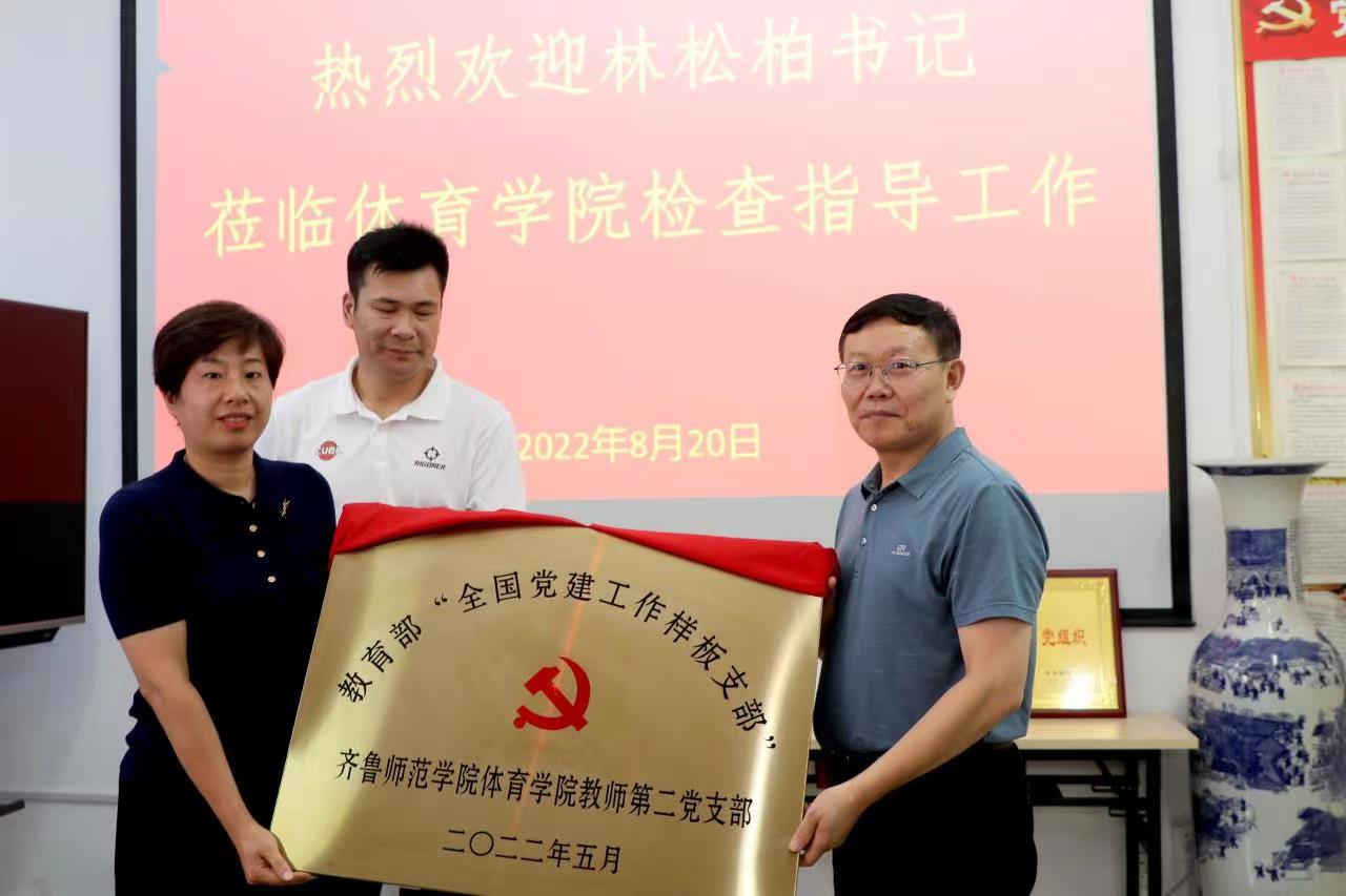 林松柏到体育学院调研指导并为教师第二党支部荣获“全国党建工作样板支部”授牌