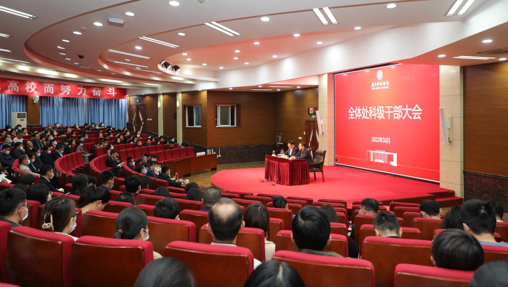 10月13日,金年会官网召开全体处科级干部大会,全面动员和部署贯彻落实第三次党代会精神、深入推进干部制度和人事制度改革。学校党委书记林松柏出席会议并讲话,党委副书记、校长秦梦华主持大会。学校领导班子、党委委员,全体处科级干部参加。