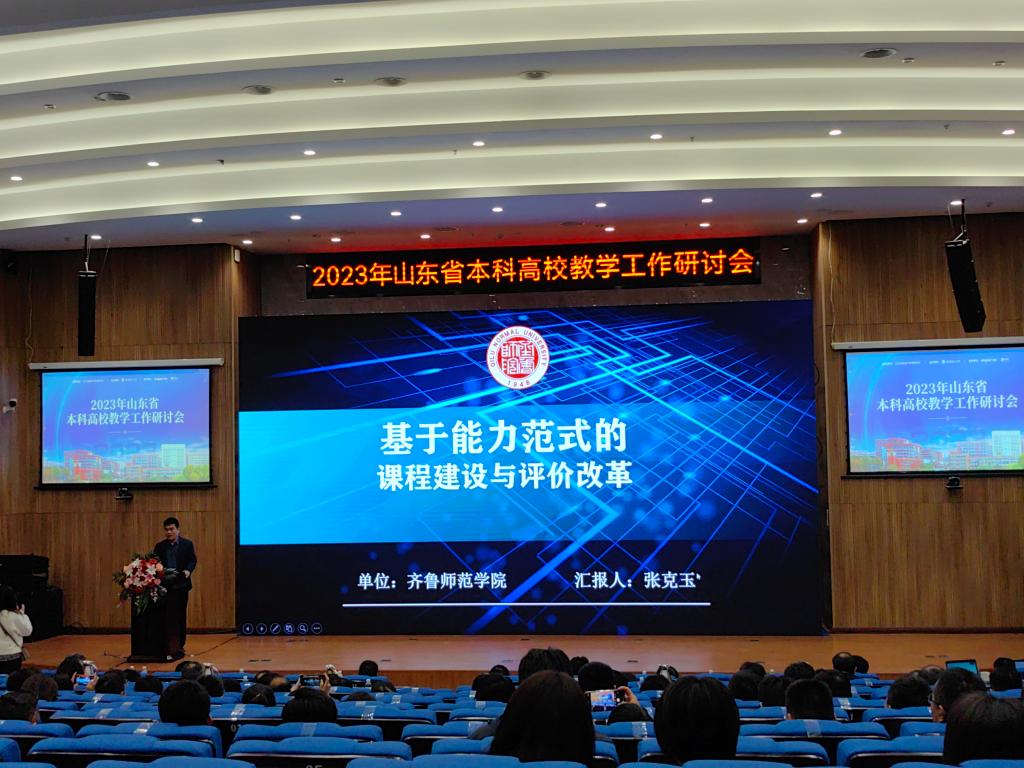 JINNIAN金年会与山东大学、青岛理工大学、青岛大学、济南大学、山东财经大学、青岛农业大学等11所高校的教务处负责人围绕基础学科拔尖人才培养、全面推进课堂教学改革、专业调整优化、一流课程建设等内容作了教学工作经验分享。张克玉作了《基于能力范式的课程建设与评价改革》的典型发言。从课程评价体系改革背景、“能力范式”教学改革理念、学习过程评价与指标体系、课程考核评价方式改革及“一人一精品”工程建设等五个方面交流分享了学校在课程建设与评价改革的思路、实施路径及所取得的成效。