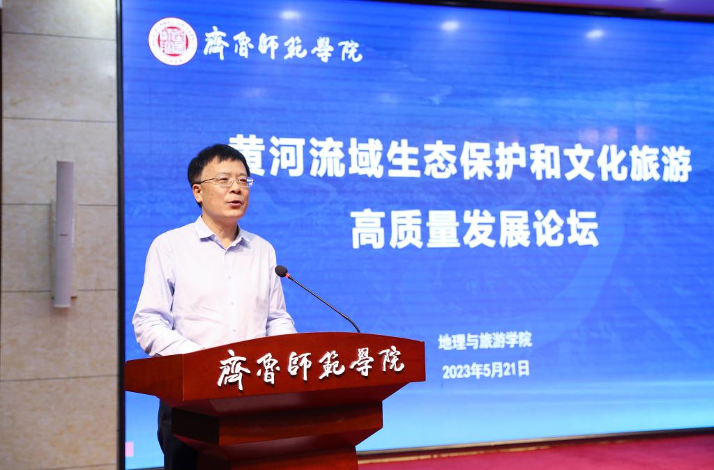林松柏在致辞中表示,黄河流域生态保护和高质量发展是事关中华民族伟大复兴的千秋大计。为响应党中央与省政府号召,为山东省生态环境保护与社会经济高质量发展贡献学者智慧,也为谋划好学校地理与旅游学院今后创新发展,学校决定举办本次论坛。本次论坛聚焦“黄河流域生态保护和文化旅游高质量发展”,希望以此为契机,充分发挥科技工作者的智囊作用,加强高校院所间的合作交流,凝聚智慧、汇聚力量,建睿智之言、献务实良策,协同助力黄河流域生态保护和高质量发展。