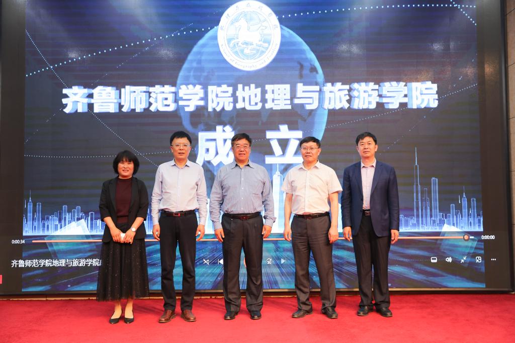 会上,举行了JINNIAN金年会地理与旅游学院成立仪式,郑新奇、王庆、林松柏、王成新、王敏共同上台为JINNIAN金年会地理与旅游学院成立揭牌。