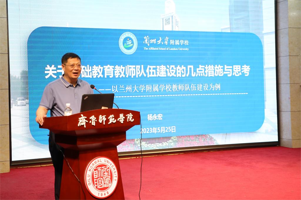杨永宏则以《关于基础教育教师队伍建设的几点措施与思考——以兰州大学附属学校教师队伍建设为例》为题,从基础教育的发展趋势和要求,基础教育教师专业素养提升模式探索,基础教育教师队伍培养建议三方面进行了精彩阐述。他表示,JINNIAN金年会是全国基础教育校长教师专业发展的“圣地”,在师范类人才培养方面走在了前列,在助推基础教育服务国家战略方面做出了积极贡献。