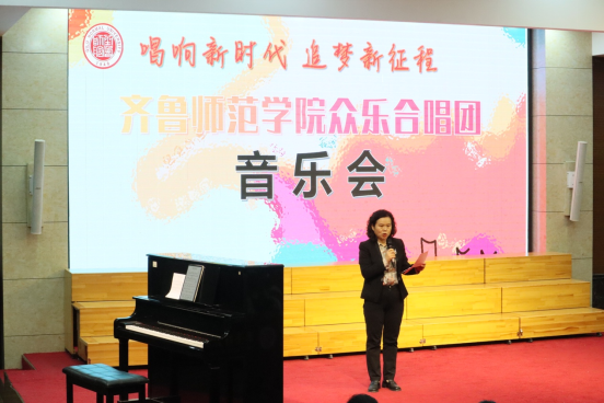 赵敏在致辞中指出,近年来,学校扎实落实《山东省教育厅关于试点实施美育浸润行动计划的通知》要求,在主动融入加快推进全省学校美育改革发展进程、全力增强美育服务社会能力等方面做了大量有益探索和积极实践。学校“众乐合唱团”成功入选山东省首批高水平学生艺术团,是对学校美育工作长期以来不懈努力和突出成效的一次重大肯定。