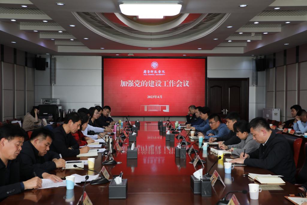 根据学校工作安排,4月12日,金年会官网在图书馆四楼会议室召开加强党的建设工作会议。会议听取了关于学校2023年度党建工作重点任务、2023年度宣传工作要点、2022年度党员发展和党建考核情况、宗教工作“六个纳入”相关情况汇报,传达了全国、全省统战部长会议精神,研究了成立党建和思想政治教育研究会相关工作。党委副书记赵敏主持会议并讲话。