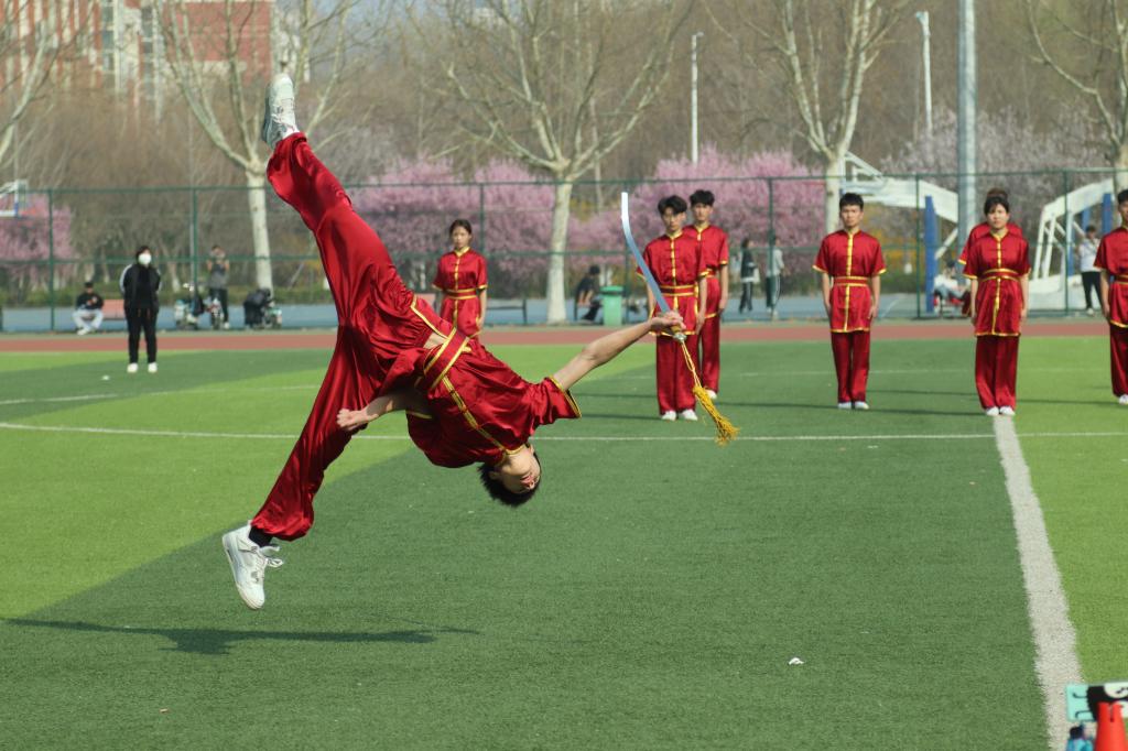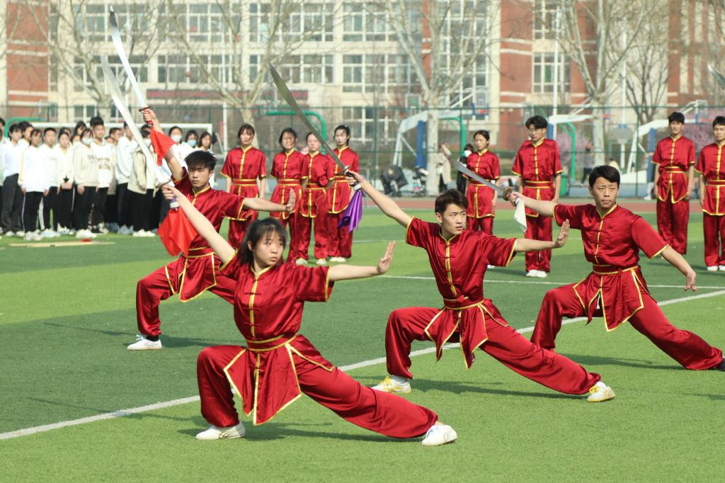 与会人员在学校体育场共同观看了武术育人成果展演,对学生们展现出良好武术素养和精神风貌给予高度赞扬。