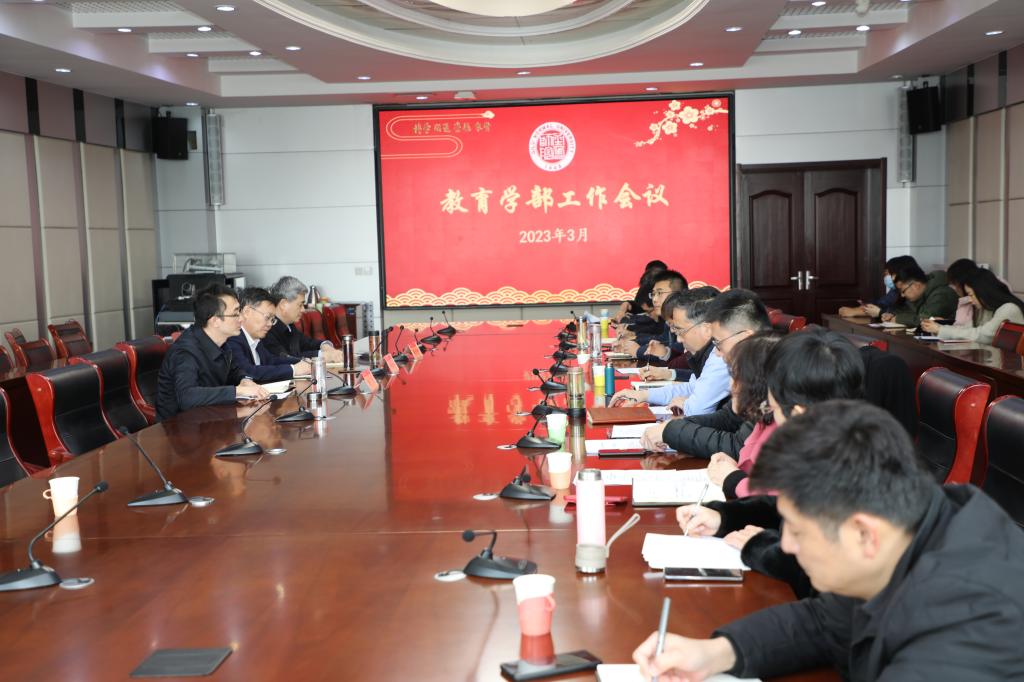 为进一步推动学校教育学科建设,提升校地合作发展水平,强化学校在基础教育方面的优势地位。3月1日上午,学校教育学部在图书馆四楼会议室召开工作会议。学校党委书记、教育学部主任林松柏,副校长张兆明,党委委员、副校长孙正出席会议,相关职能部门负责人和二级学院院长参会。会议由孙正主持。与会人员就山东省教师教育协同创新项目的推进工作进行全面讨论。