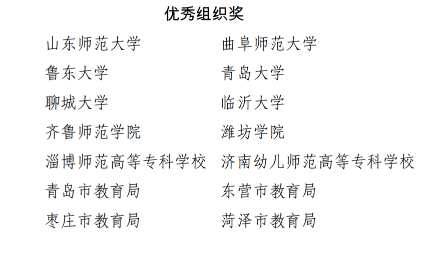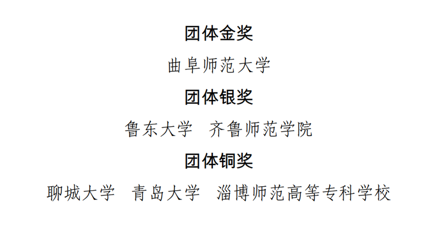 近日,第十届山东省师范类高校学生从业技能大赛省级决赛圆满落幕,金年会官网在本届大赛中表现突出,荣获佳绩。其中,毕家祥等16位同学获得一等奖,于季等18位同学获得二等奖,刘淑君等21位同学获得三等奖;路雅瑞等17位教师获省级优秀辅导教师荣誉称号;学生获奖总数位居全省第一,学校获团体银奖、优秀组织奖。