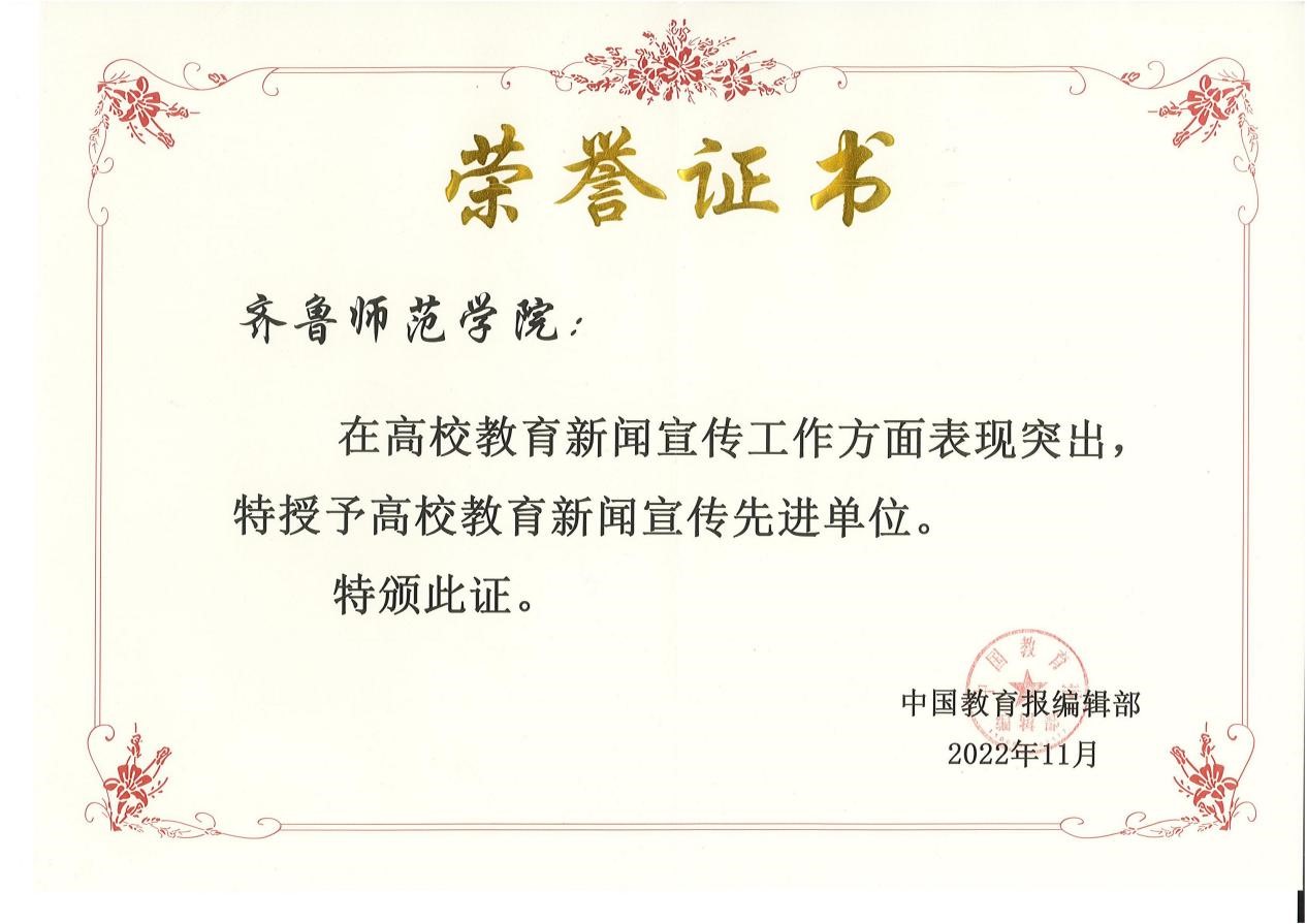 近日,在中国教育报编辑部开展的年终新闻宣传工作总结评选中,金年会官网被授予2022年度“高校教育新闻宣传先进单位”称号。