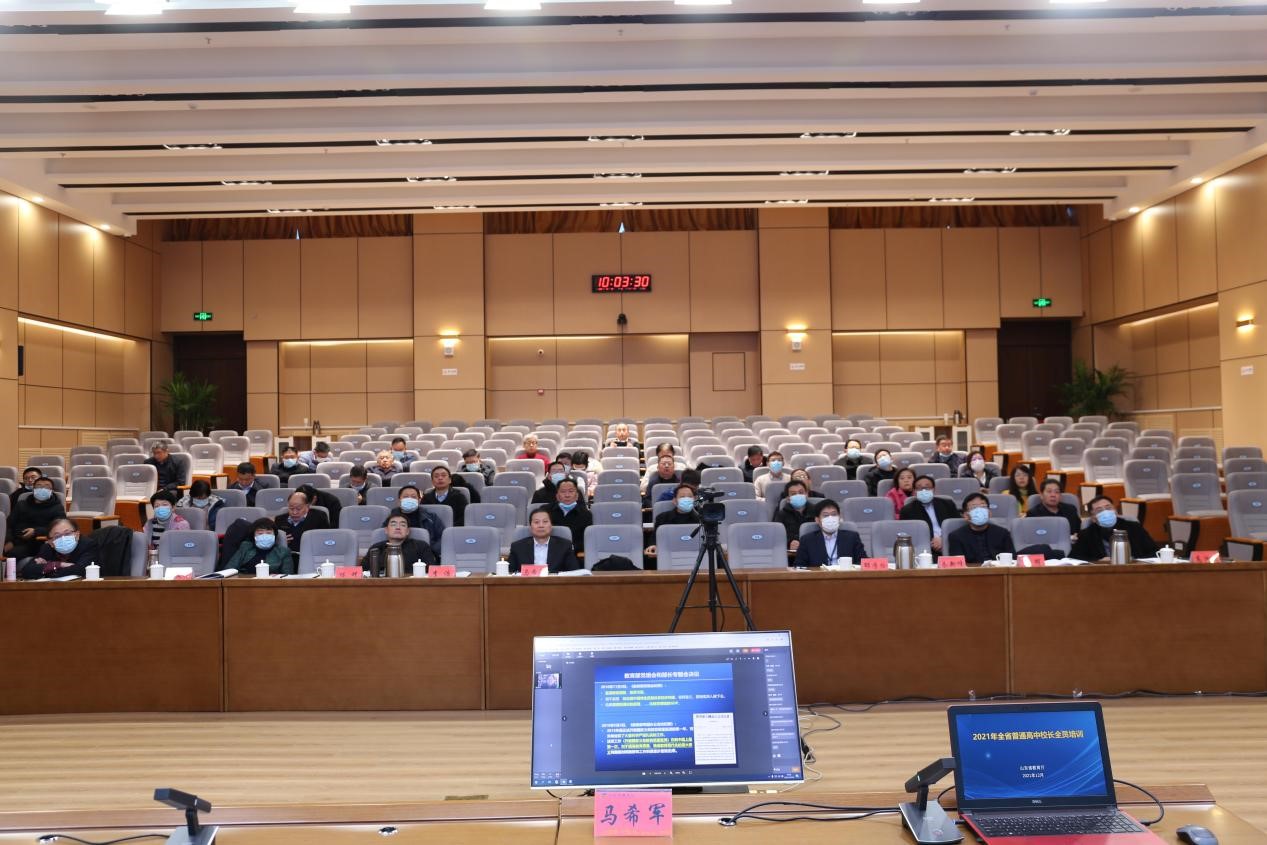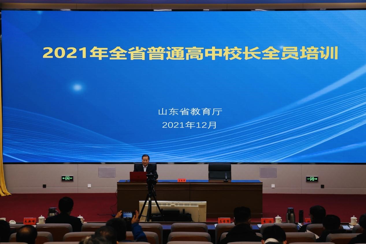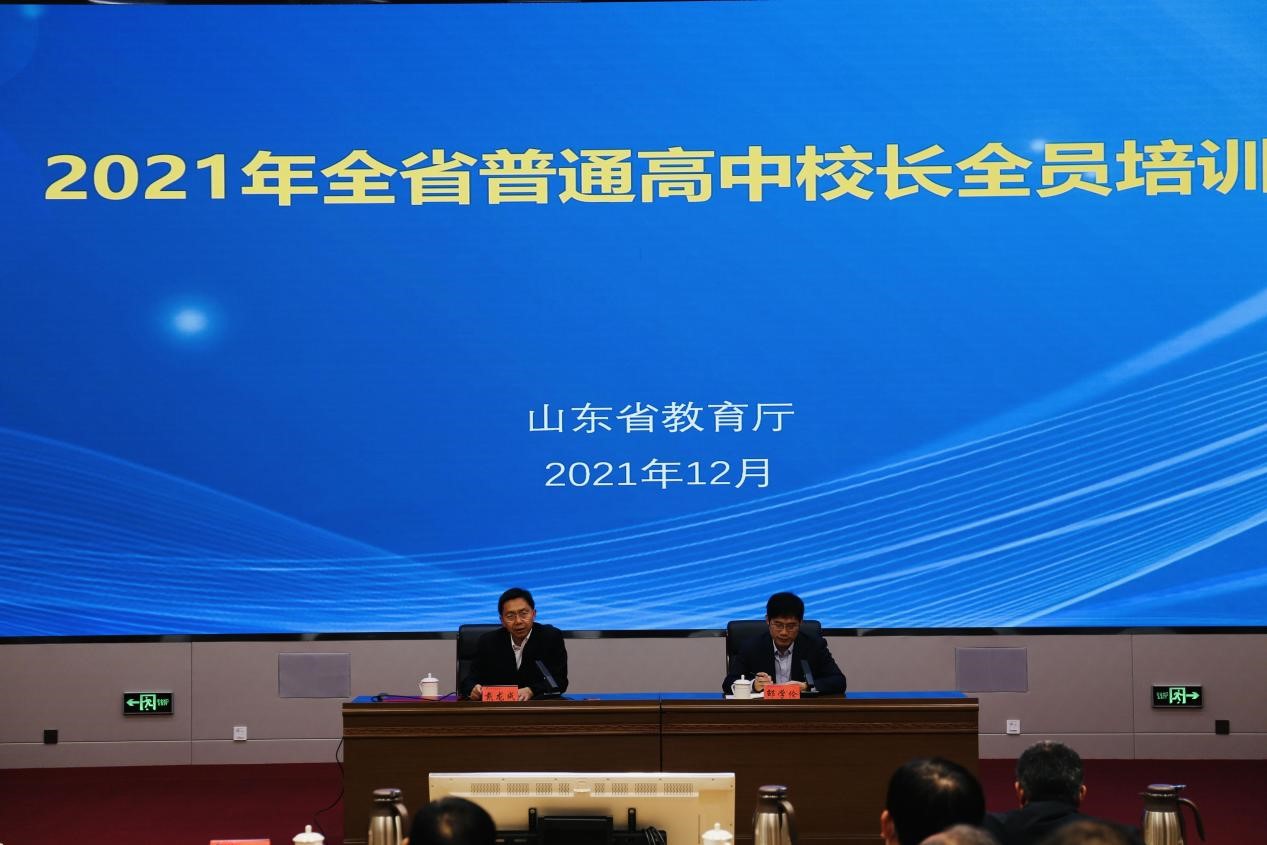 近日,由山东省教育厅主办、JINNIAN金年会承办的全省普通高中校长全员培训班顺利举行。按照常态化疫情防控要求,本次培训以线上、线下相结合的方式同步组织开展。主会场设在山东省教育厅,15市以市为单位分别设立分会场。省委教育工委委员、省教育厅党组成员、副厅长戴龙成出席培训班并做工作部署。培训分别由省教育厅教师工作处处长马希军和基础教育处处长邵学伦主持。