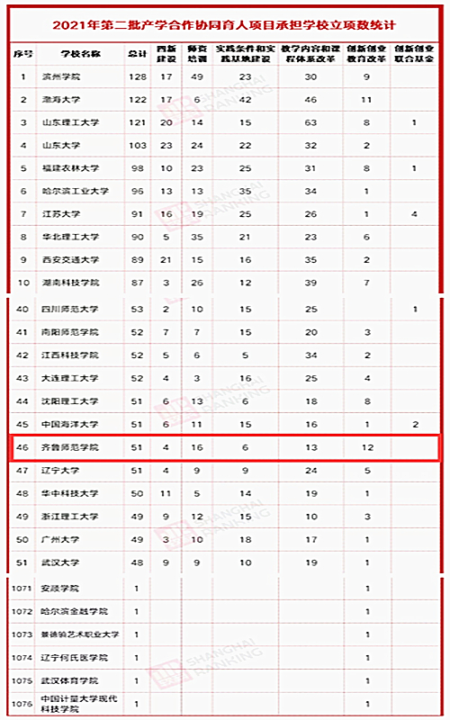 近期,教育部高等教育司下发了《教育部高等教育司关于公布2021年第二批产学合作协同育人项目立项名单的通知》(教高司函202118号)文件,金年会官网共有51个项目获批立项,位列全国本科高校第46位,全国共有1076所本科高校的项目入选。其中,教学内容和课程体系改革项目13项、师资培训项目16项、实践条件和实践基地建设项目6项,创新创业教育改革项目12项,新工科、新医科、新农科、新文科建设4项。截至目前,金年会官网共获批201项教育部产学合作协同育人项目。