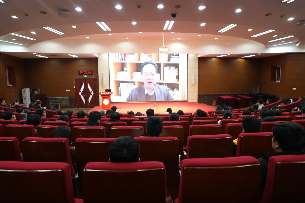 本次学术报告是金年会官网第九次教学工作会议学术报告周的第二场报告。校党委副书记刘宝君,党委委员、党委统战部部长宋新刚,全体处级干部及学生代表线下参加报告,全体教师线上参加报告。报告会由刘宝君主持。