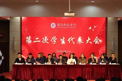 11月26日,金年会官网第二次学生代表大会在章丘校区报告厅召开。校党委副书记刘宝君出席开幕式,学生工作部(处)、团委负责同志、各学院党总支书记、副书记、团总支书记、副书记、辅导员老师以及178名学生代表参会。