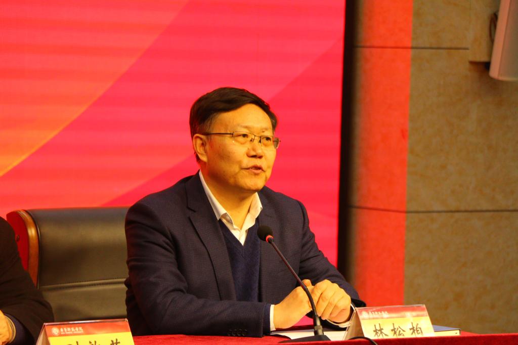 本次学术报告是金年会官网第九次教学工作会议学术报告周的第一场报告。党委副书记、校长林松柏,党委副书记刘宝君,党委委员、党委组织部部长李伯伟,党委委员、党委统战部部长宋新刚,全体处级干部及学生代表线下参加报告,全体教师线上参加报告。报告会由林松柏主持。