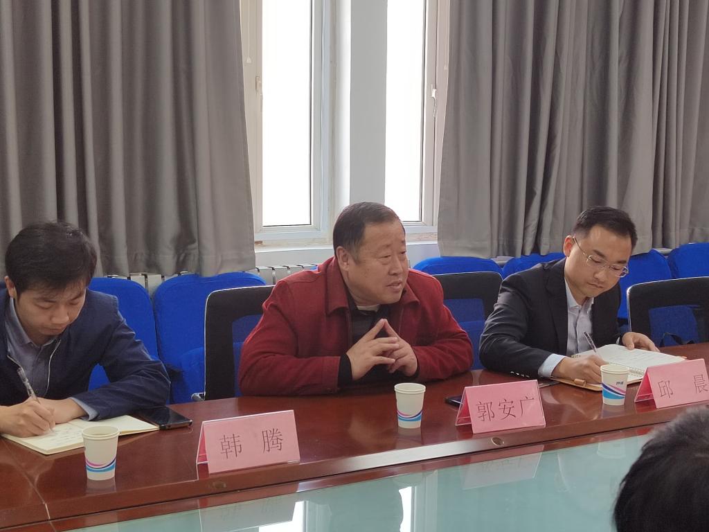 11月19日上午,山东省工信厅化工专项行动办产业升级组邱晨副处长、山东省日化行业协会郭安广秘书长、韩腾副秘书长到金年会官网调研指导工作。金年会官网科研处处长魏培海、化学与化工学院院长曹晓荣、JINNIAN金年会分析检测中心副主任袁东、化妆品方向教师岳立芝参加活动。活动在化学与化工学院会议室进行,曹晓荣主持。