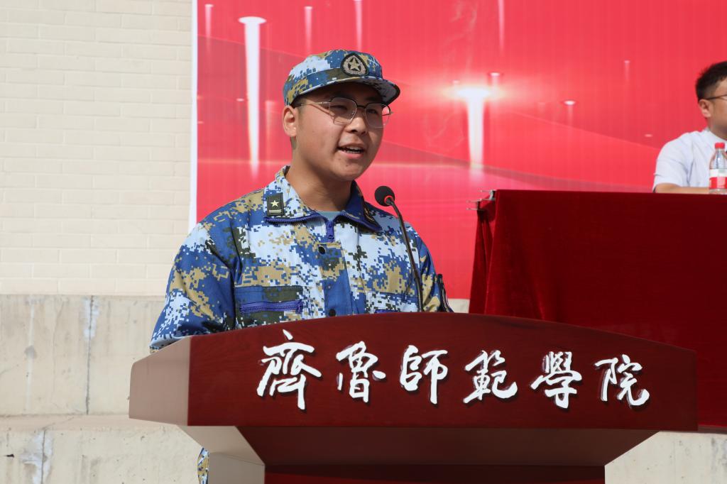 音乐学院2021级王曦同学代表全体新生进行发言。他分享了自己初入大学校园时的所见所闻和心路历程,表示在接下来的大学生活中将志存高远、勤学好问、严以律己,自觉做一个品德高尚的人,不负青春、不负韶华、不负时代,成为德智体美劳全面发展的社会主义合格建设者和接班人。在他的倡议下,全体新生齐声发出“请党放心,强国有我;请师院放心,奋斗有我!”的铮铮誓言。