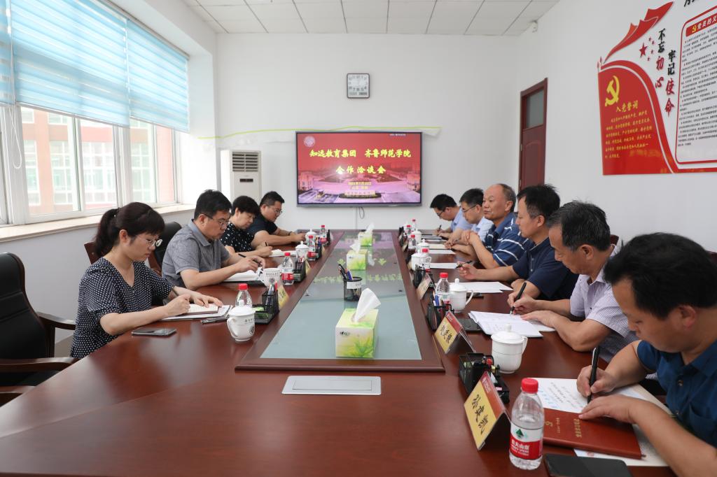 7月15日,金年会官网与山东知远教育集团举行合作洽谈会。学校党委书记王玉华,山东知远教育集团董事长王永庆、副总经理徐平、人力资源总监马玉琳、行政中心主任于洪森,学校党办校办主任牟伟,以及教师教育学院相关人员参加会议。