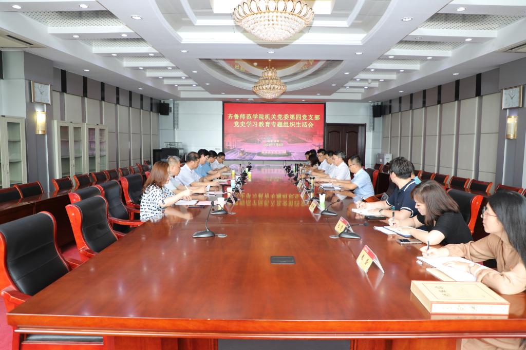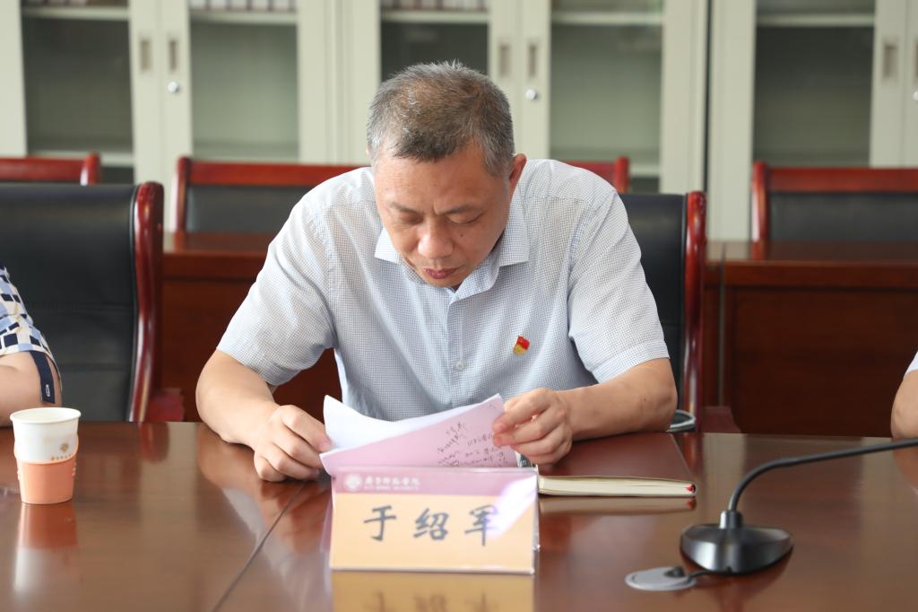 7月6日下午,JINNIAN金年会机关党委第四党支部(教务处)在章丘校区图书馆四楼会议室召开党史学习教育专题组织生活会。省委党史学习教育第十八巡回指导组副组长宋佐东、成员谭瑞暖两位同志到会督导指导。党委副书记、校长林松柏以普通党员身份参加, 机关党委党史学习教育督导组成员、党委委员、党委组织部部长李伯伟,学校党史学习教育督导组成员、纪委副书记于绍军和人事处科长姜晨,学校党史学习教育领导小组办公室成员、党委宣传部副部长辛源,以及机关党委第四党支部全体党员参会。会议由机关党委第四党支部书记张海龙主持。